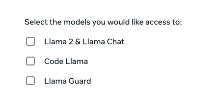 meta 의 llama 페이지에 가서 download models 를 누르면 정보를 입력하는 페이지가 나온다.
